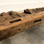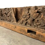 - DESCRIPTION: This old architectural beam from Java has handsome floral scrolled carved detail and gorgeous organic patina from decades of wear. At eight and a half feet long, this antique panel was Intricately hand carved from a single slab of teak wood and used as a decorative architectural beam in a traditional joglo. This rare panel showcases the expert skill and craftsmanship Javanese wood carvers are renowned for and will be an absolute statement piece in any space. Organic rustic character and texture throughout due to age and wear. Solid teak wood. Unfinished, original patina.