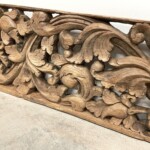 - DESCRIPTION: This intricately hand carved panel has a lovely scroll and floral motif and a handsome raw beauty. Despite decades of the elements and weathering, this old architectural panel has become more impressive with age. Originally part of a set of Old Indonesian Doors, located at the entrance of a traditional house in Java, Indonesia, this old teak panel is rich with organic character and history. Hand carved by a local artisan in Java decades ago from a solid teak plank, showcasing the expert skills of traditional Indonesian woodworkers. Organic, aged patina throughout consistent with age and wear.