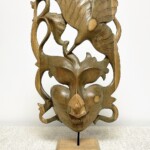- PRODUCT: Hand Carved Abstract Wood Mask on Stand