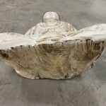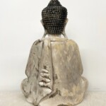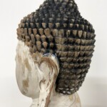 - DESCRIPTION: This hand carved statue of the Buddha in meditation brings a timeless, peaceful energy to any space. At two feet high, this Buddha was hand carved from one solid block of Suar Wood by a traditional wood carver in Ubud, Bali. Delicately carved to reveal a handsome face awash with calm and serenity and intricate hand carved detail decorating the crown of his head. From his serene countenance, to the gentle folds of his robes, the expertise of Balinese wood carvers is on display. A whitewash distressed finish adds to it’s unique artistry and one-of-a-kind character. Hand carved detail throughout – hand finished.