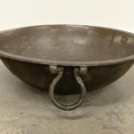 - DESCRIPTION: This large antique brass cooking kettle from Java, Indonesia is a handsome piece and a rare find. At 28 inches in diameter, it’s a significant size and would make a handsome addition to your home inside or in the garden. Originally made for utilitarian cooking purposes for the production of sugar, or other products. This antique brass kettle has beautiful patina from it’s years of use and wear, with two large handles on each side. Handmade from solid brass using the ancient lost wax cast process.
