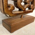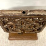 - DESCRIPTION: If your looking for a unique home accent with an authentic past history and subtle sophistication, this old ceramic ventilation tile is an eye catching objet d’art. Handmade in Java as an architectural ventilation tile used in Chinese Indonesian homes, their open decorative style was also key to their function, allowing for air flow in and out of the home. Handcrafted from clay by local artisans in the 1950’s and painted with a brown glaze, some slight wear is visible but overall it’s in excellent condition. Mounted on a custom made teak wood stand for a beautiful display.