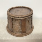 - DESCRIPTION: If you love baskets to accent your home, this old handwoven rattan basket from Madura, Indonesia is a must to add to your collection. Originally handcrafted for utilitarian household, this authentic vintage basket is a handsome traditional artifact. Despite it’s age, the basket is in excellent condition with a handsome organic patina from decades of use and wear. Beautifully handwoven to create it’s functional open shape with fine edging at the rim and base. A unique feature of this old basket are the hand carved wood accent panels that decorate the exterior of the basket. A wood bottom was incorporated into the base, most likely for durability. Basket condition as pictured.