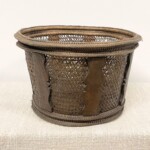 - DESCRIPTION: If you love baskets to accent your home, this old handwoven rattan basket from Madura, Indonesia is a must to add to your collection. Originally handcrafted for utilitarian household, this authentic vintage basket is a handsome traditional artifact. Despite it’s age, the basket is in excellent condition with a handsome organic patina from decades of use and wear. Beautifully handwoven to create it’s functional open shape with fine edging at the rim and base. A unique feature of this old basket are the hand carved wood accent panels that decorate the exterior of the basket. A wood bottom was incorporated into the base, most likely for durability. Basket condition as pictured.