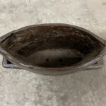- DESCRIPTION: We love the hand hewn, rustic simplicity of this teak pot. In it’s former life, it was a traditional bell that hung around the neck of a cow or water buffalo, calmly knocking a “hello” as she moved casually through the field. In the re-purposing of this old teak bell, the wood clapper has been removed to leave a hollow interior – making it just perfect for a unique vase or organic home accent! Originally handcrafted in Java, Indonesia decades ago for utilitarian purposes, from one solid piece of teak wood. Each piece is unique and one-of-a-kind. Organically aged patina.