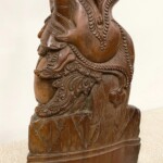 - DESCRIPTION: This vintage hand carved statue of Dewi Ratih, a Hindu moon goddess renowned in Bali and Java, is a beautiful wood carving. A bit over two feet tall. she has an elegant presence and intricate hand carved detail throughout. Her delicately carved out arm grasping her clothing shows the expert skill of traditional Balinese wood carvers. Shown atop a demon serpent, Dewi Ratih is revered for her beauty and grace, and is also known as the Goddess of Beauty. Her myth is linked to lunar eclipses. Circa 1970 – carved in Bali from one solid piece of wood.