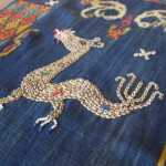 - DESCRIPTION: Vintage handwoven backstrap loomed textile from East Sumba, East Nusa Tenggara, Indonesia collected in the mid 1990’s. This unique “selendang” sash textile, known as “halenda pahikung hemba wuti kau,” combines warp ikat and supplementary warp ikat weaving techniques (pahikung). The warp ikat method is visible in the center panel starting with the top geometric motif. The pahikung weaving process and the embroidered nassa shell/ bead sections are interspersed throughout all three sections of the textile. Pahikung is a weaving technique employing thick, light supplementary warp threads that decorate this textile with the geometric designs. The supplementary warp threads are stained to obtain a variety of color. Other sections of this textile have animal figures embroidered with nassa shells and ceramic beads, creating a handsome piece of cloth rich in style, substance and technique. Condition: Like new, mint.*Pictures of products shown may vary slightly from their original color due to monitor display settings or photography lighting.*