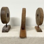 - DESCRIPTION: If your looking for unique home accents that have authentic character and a genuine past history these vintage teak wheels will be a great addition to your space. Each wheel was handmade in Java for utilitarian purposes decades ago and now have been handsomely mounted on custom made teak wood stands for a beautiful display. The natural artistry of the vintage teak wheels lie in their simplicity and organic patina. Each wheel is unique and one-of-a-kind. Natural rustic character and texture throughout. Select one or several to enhance your home decor. Sold Individually