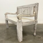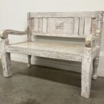 - PRODUCT: Antique Whitewashed Rustic Carved Wood Bench