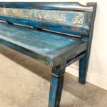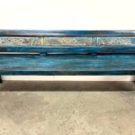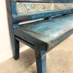 - PRODUCT: Long Distressed Painted Reclaimed Wood Carved Bench Turquoise b
