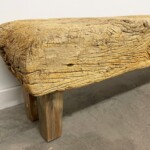- DESCRIPTION: This absolutely handsome old rice mortar is now a gorgeous bench and a definite statement piece. We love it’s organic modern vibe and it’s natural textured patina only wear and time can provide. Once used to husk rice with a wooden pole (pestle), this old wood mortar known in Indonesia as a “lesung” is a utilitarian village artifact with a new purpose. Handcrafted in Indonesia decades ago from a solid block of tropical wood, it’s now been transformed into an impressive display of nature’s artistry. Tapered legs of reclaimed hard wood were handcrafted to keep the focus on the intrinsic beauty of the bench. All sides display their own canvas of textured variations of the wood grain making this bench a wonderful piece to be right at home in the center of a space. If you’re looking to find just the right bench to add to your organic modern home décor, this piece will definitely be your understated, one of a kind treasure! Natural rustic texture and character throughout.