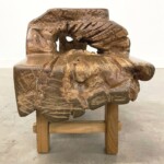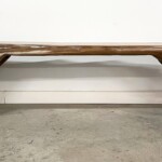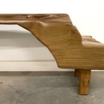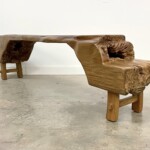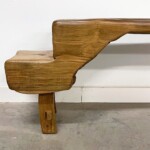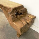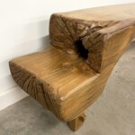 - DESCRIPTION: If you’re searching for an unusual bench, with organic beauty, and a modern rustic vibe, this bench is it! A totally unique design, coupled with handsome, natural character of the old teak wood, puts this one-of-a-kind teak wood bench in a class of its own. Handcrafted from a single slab antique teak mortar from Indonesia, and inspired by it’s curvature, a once utilitarian object has been transformed into a gorgeous modern organic bench. Using mortise and tenon joinery, the reclaimed teak legs provide a simple base and keep the focus on the intrinsic beauty and warmth of the teak grain. Thoroughly cleaned, sanded, with a smooth finish throughout, this organic modern teak bench will be a wonderful addition to any home. Natural rustic texture and character throughout.