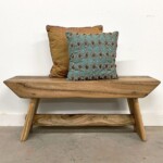 - DESCRIPTION: Handcrafted, the handsome simplicity of this small wood bench will be right at home in so many places. It’s the perfect small bench for an entryway, making a beautiful seat for taking off your shoes, under artwork or as an accent piece just about anywhere! The graceful, curved lines of this bench allow the eye to focus on the natural beauty of the wood grain. Handcrafted from teak and Indonesian rosewood (suar wood) this modern organic bench has a timeless style.