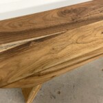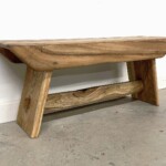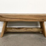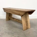 - DESCRIPTION: Handcrafted, the handsome simplicity of this small wood bench will be right at home in so many places. It’s the perfect small bench for an entryway, making a beautiful seat for taking off your shoes, under artwork or as an accent piece just about anywhere! The graceful, curved lines of this bench allow the eye to focus on the natural beauty of the wood grain. Handcrafted from teak and Indonesian rosewood (suar wood) this modern organic bench has a timeless style.