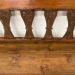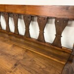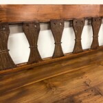 - DESCRIPTION: Old World Colonial style is the vibe of this handsome teak wood bench. Hand crafted from old teak wood, with it’s beautiful wood grain and antique screen panels from Java, this unique bench is one-of-a-kind. Over six feet long, this Colonial style teak bench provides tons of seating and a classic elegance. The hand carved turned legs and swirled arm detail inside and outside add to it’s air of rustic refinement. Right at home in a variety of settings, this old wood teak bench is sure to be a wonderful addition to your home. Organic rustic character and texture from the reclaimed teak and antique panels.