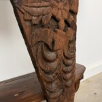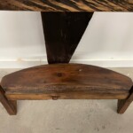 - DESCRIPTION: If you’re looking for an absolutely unique piece for your entry way, then this reclaimed wood carved console table is it! This one of a kind, handcrafted console table has a sought after half moon style, yet designed in a very creative and unique way. An old carved architectural panel, in all it’s raw and salvaged beauty, decorates the front and brings an artistic flair to this console table. The carved floral panel’s weathered patina, that despite it’s age and wear, brings a refined character to this unique piece. in your home. Hand crafted by an Indonesian artisan from reclaimed teak wood and other hard wood, this curved front foyer table has a lower shelf for additional display. This artisan console table will be a statement piece anywhere it finds a home and just the perfect accent piece to bring some artistic flair to anywhere in your home. Rustic patina and character throughout from the reclaimed wood.