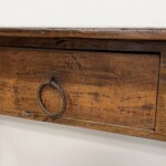 - DESCRIPTION: If you’re looking for a console table that has genuine vintage style and character this piece may be the one! Handcrafted from repurposed old teak and other hardwood, this console table combines a classic style, handsome old wood character throughout, and distinctive decorative detail, making this a one-of-a-kind piece. The console table’s organically textured top, with a rich, warm patina, has been hand sanded for a smooth finish, yet maintains it’s “antique” appeal. A single large drawer, carved out of the single board it is recessed to, provides storage for small items. This reclaimed wood console table would be an attractive piece for your foyer, serve as a buffet or even multipurpose as a desk. It’ll also transition seamlessly in a variety of décor styles! Organic rustic character and texture throughout from the reclaimed wood.