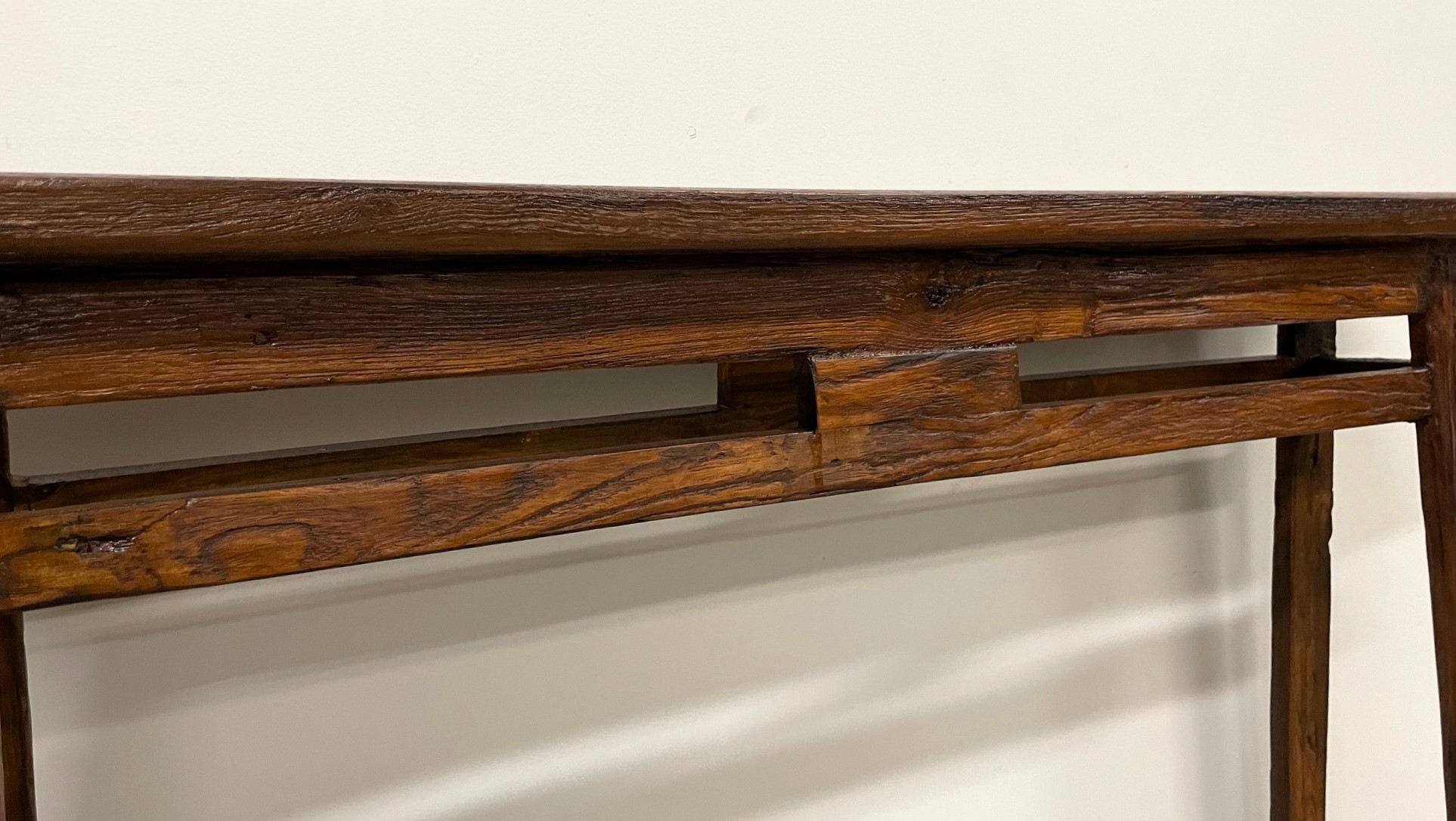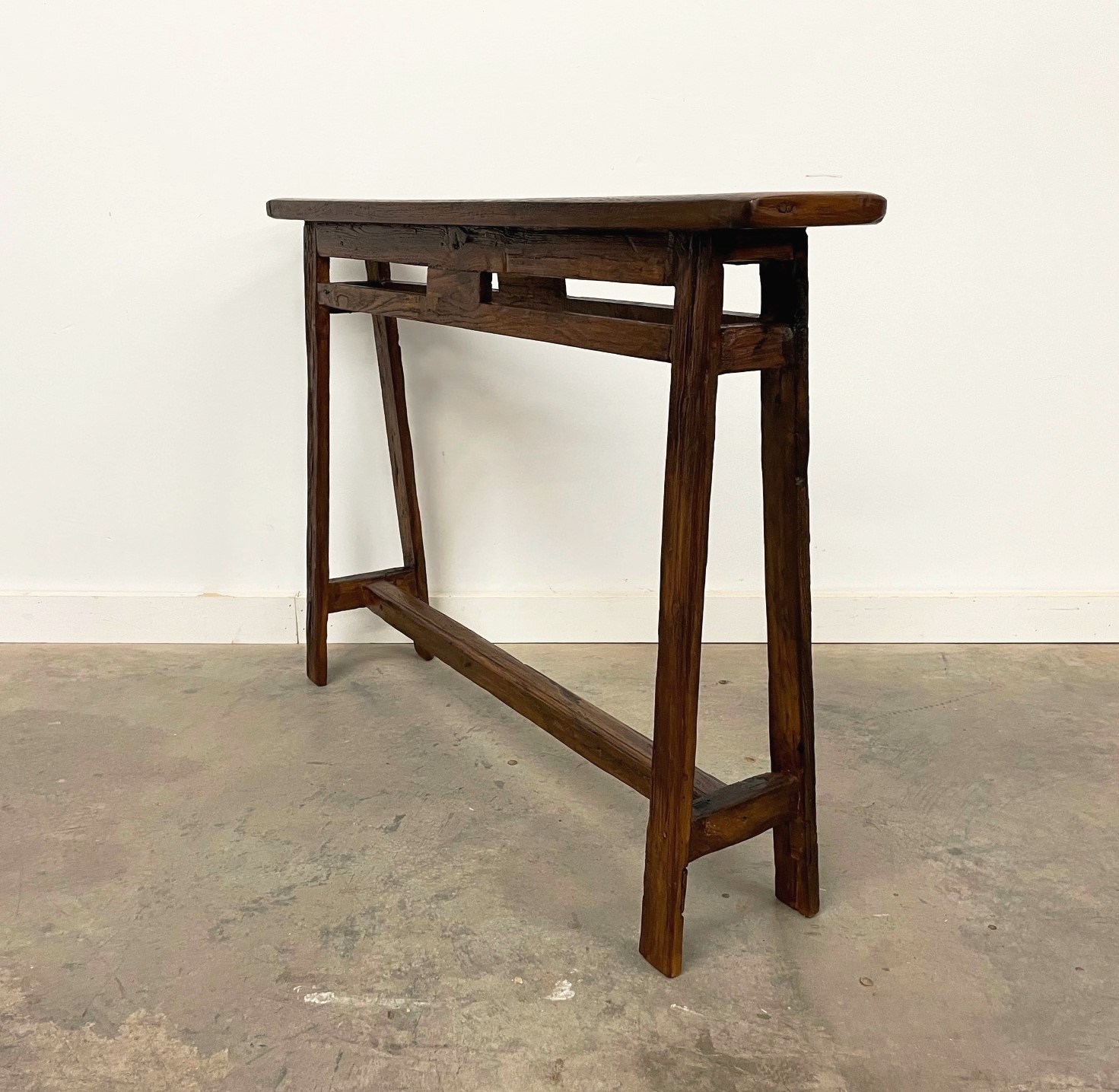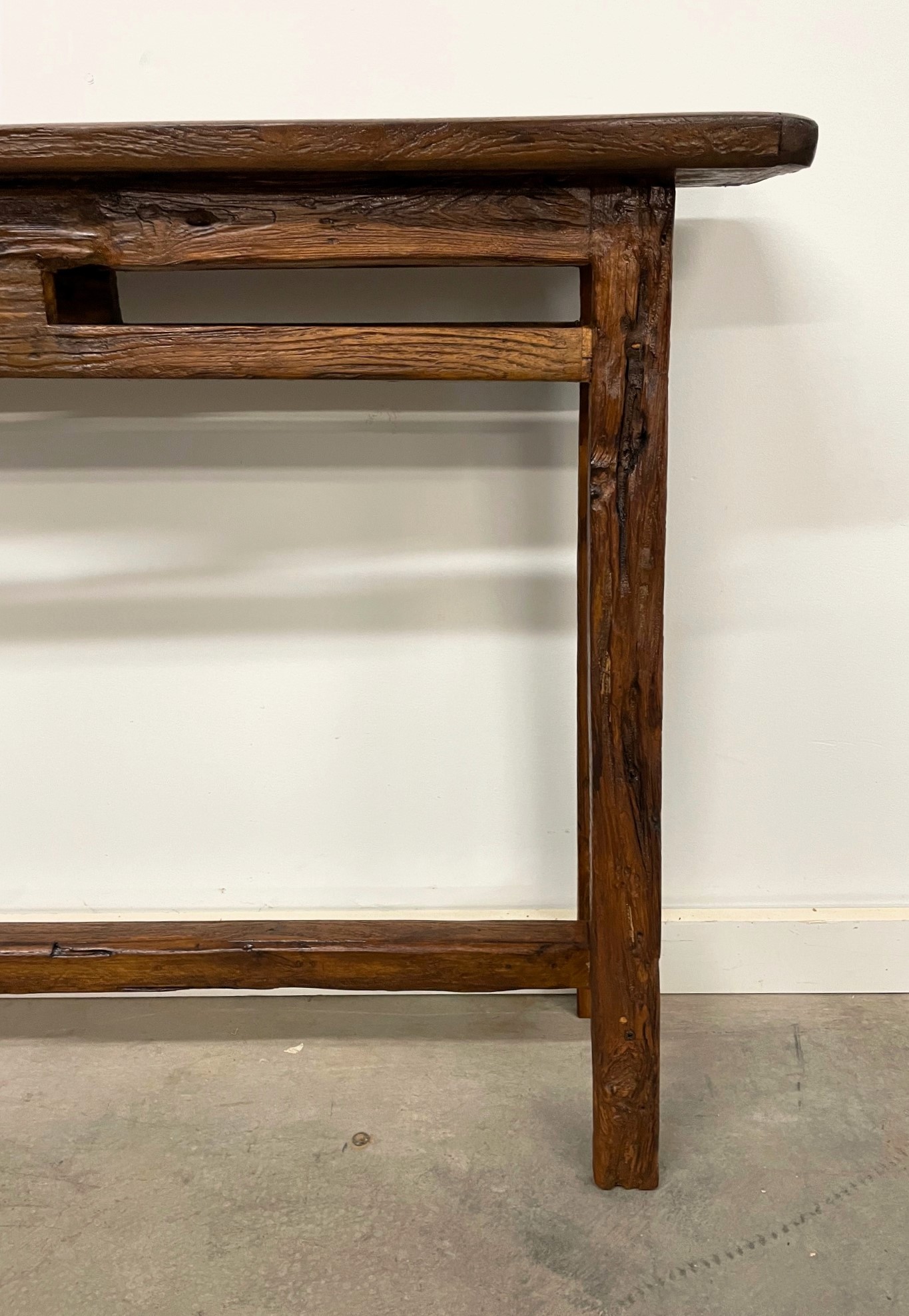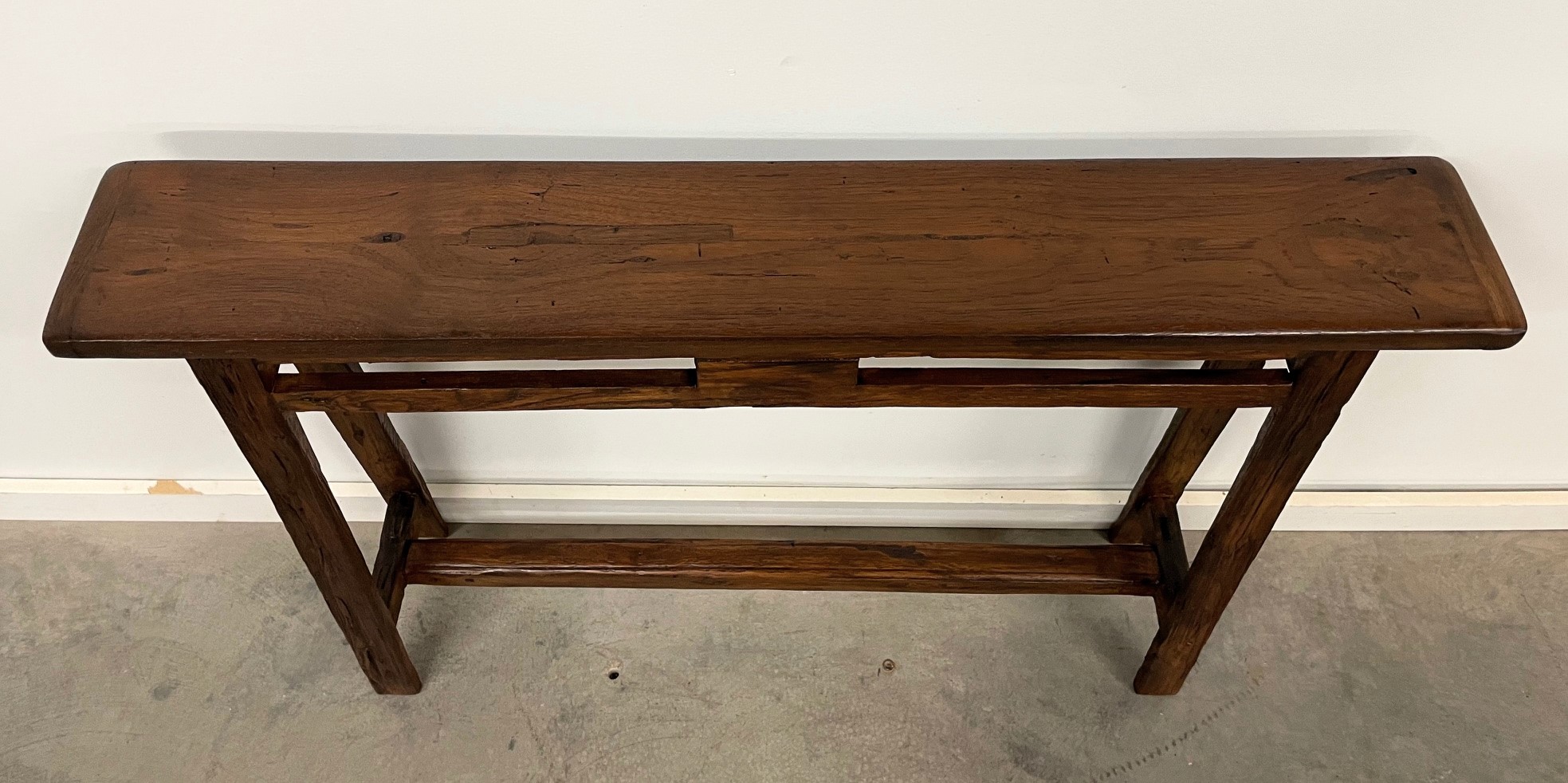 - DESCRIPTION: This rustic console table has an organic simplicity and handsome, natural character from authentic old reclaimed teak wood. Hand crafted from reclaimed teak this entryway console table has that old world vibe, that’ll be right at home in so many spaces. It’s simple lines allow the natural rustic beauty of the teak wood grain to take center stage. A perfect piece for an entry way, under art work or at the end of a hall, this reclaimed teak console table will be a wonderful addition to your home. Rustic character and patina throughout from the reclaimed teak wood. Smooth sanded and finish with all natural pure shellac.