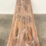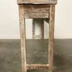 - DESCRIPTION: An old carved architectural panel from Indonesia was the inspiration for this beautiful console table. At a little over five feet in length, it’s streamlined design allows the vintage carved panel to take center stage. Hand crafted from reclaimed teak and other wood, the console table has a whitewash finish giving it a contemporary style. Organic character and texture throughout. Hand sanded for a smooth finish.