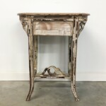 - DESCRIPTION: This distressed mahogany carved accent table is just the perfect piece to stand alone or use as a side table. It’s a wonderful new take on a traditional style! We love it’s unique contemporary character and charm that combines its classic European style design with a whitewashed hand distressed finish for a one-of-a-kind piece. The beautiful carved floral detail that decorates the base on both sides is simply lovely! The carved details throughout, as well as it’s it’s oval edged top make this a beautiful accent table or side table! It will also work nicely in a small entry. Crafted in Indonesia from mahogany wood – whitewash, distressed hand finish. *Please note that colors of items pictured may vary slightly from their original color due to monitor display settings or photography lighting.*