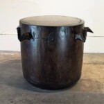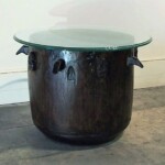 - DESCRIPTION: Add some ethnic decor to your home with a handsome accent piece like this one-of-a-kind tribal side table from Gado Gado. The reclaimed teak wood base, with it’s tribal style decorative accents was hand crafted by a village artisan in Indonesia. A round glass top with beveled edge sits atop the teak base making this side table a wonderful mix of modern and ethnic. It also provides a larger surface making it very functional as well as unique. Organic rustic texture and character throughout from the reclaimed wood. 20″ Commercial glass top included.